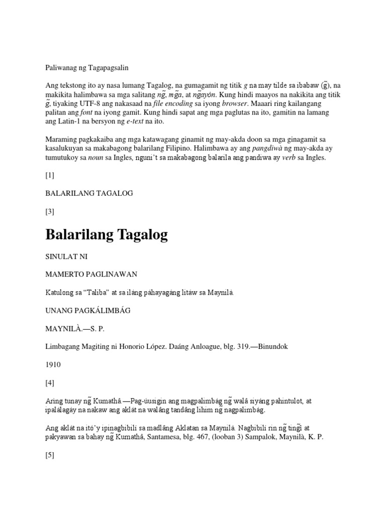 Balarilang Tagalog Tagalog Language Notation